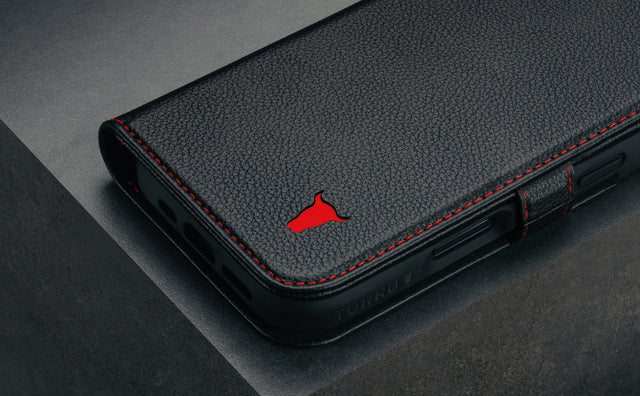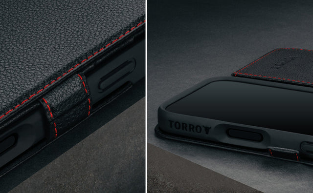 L'étui portefeuille en cuir TORRO pour iPhone 16 Pro avec porte-cartes et béquille est conçu et fabriqué exclusivement pour l'iPhone 16 Pro. L'ajustement précis garantit un accès complet et sans restriction à l'écran, à l'appareil photo, aux boutons et au port de charge. Le cadre présente également une découpe précise pour permettre une utilisation facile du bouton de capture.