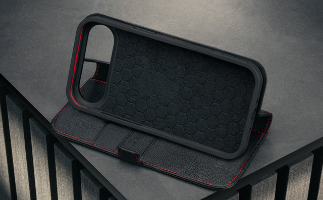 La coque pour iPhone Air est dotée de notre technologie GEO-AS-3 améliorée. Le cadre est doté d'une couche de TPE et de poches d'air géométriques pour une absorption des chocs et une protection optimales. L'étui portefeuille est également doté d'un bord surélevé unique autour de l'appareil photo, pour une protection optimale contre les dommages et les rayures.