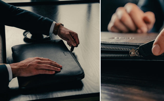 La housse pour ordinateur portable est dotée d'une doublure intérieure en feutre de laine 100 % douce pour éviter les chocs et les marques sur votre ordinateur portable lors de son introduction et de son retrait. Chaque couche de matériau a été soigneusement étudiée, éliminant le poids et le volume pour maintenir un profil global mince.